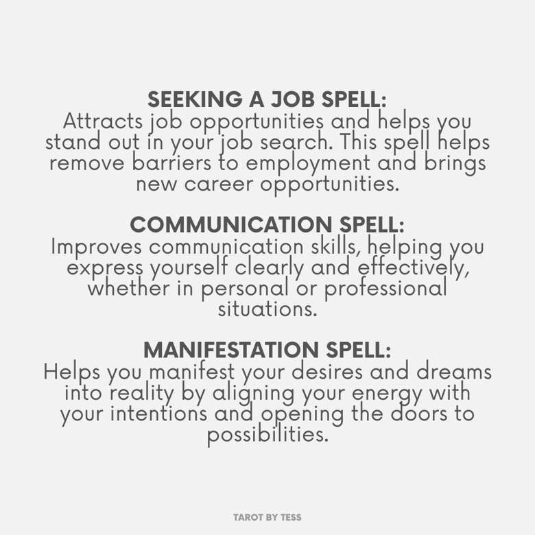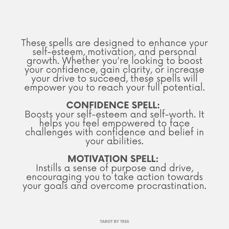 – Motivation spell: Spark inspiration and drive to achieve your goals.