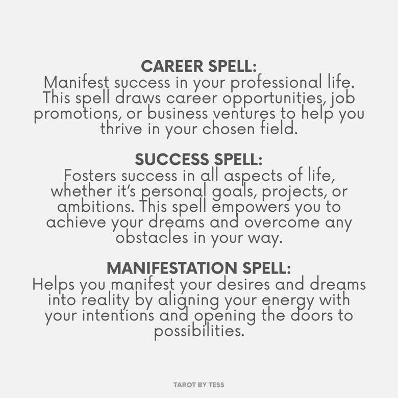 – Manifestation spell: Channel your energy to bring desires into reality.