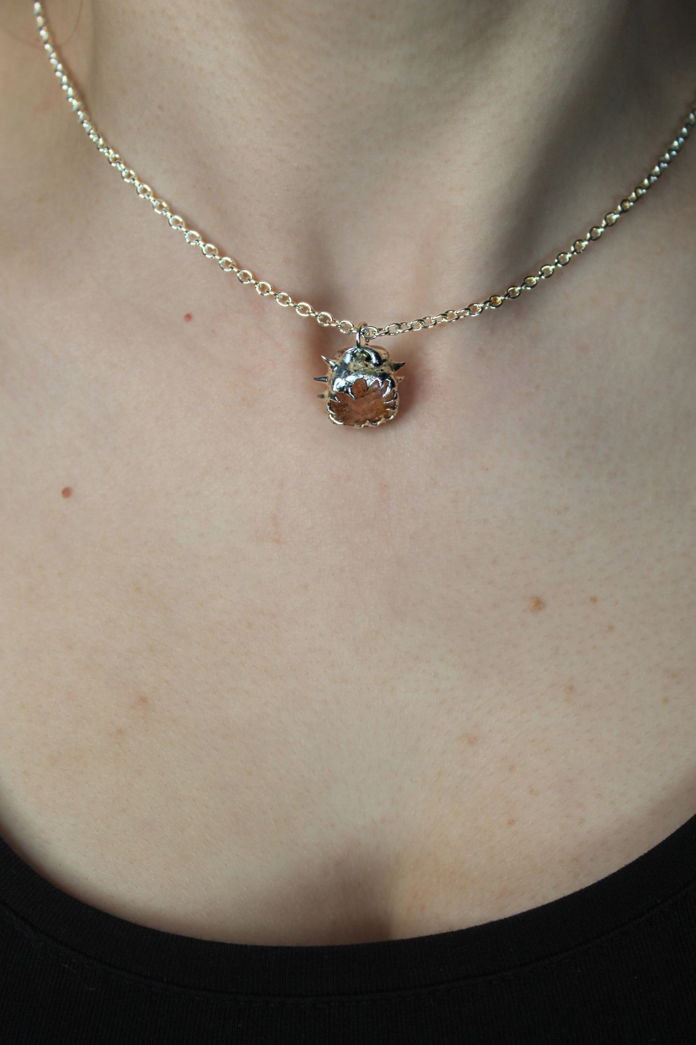 Soft Soldered Spiked Peach Stone Pendant Necklace