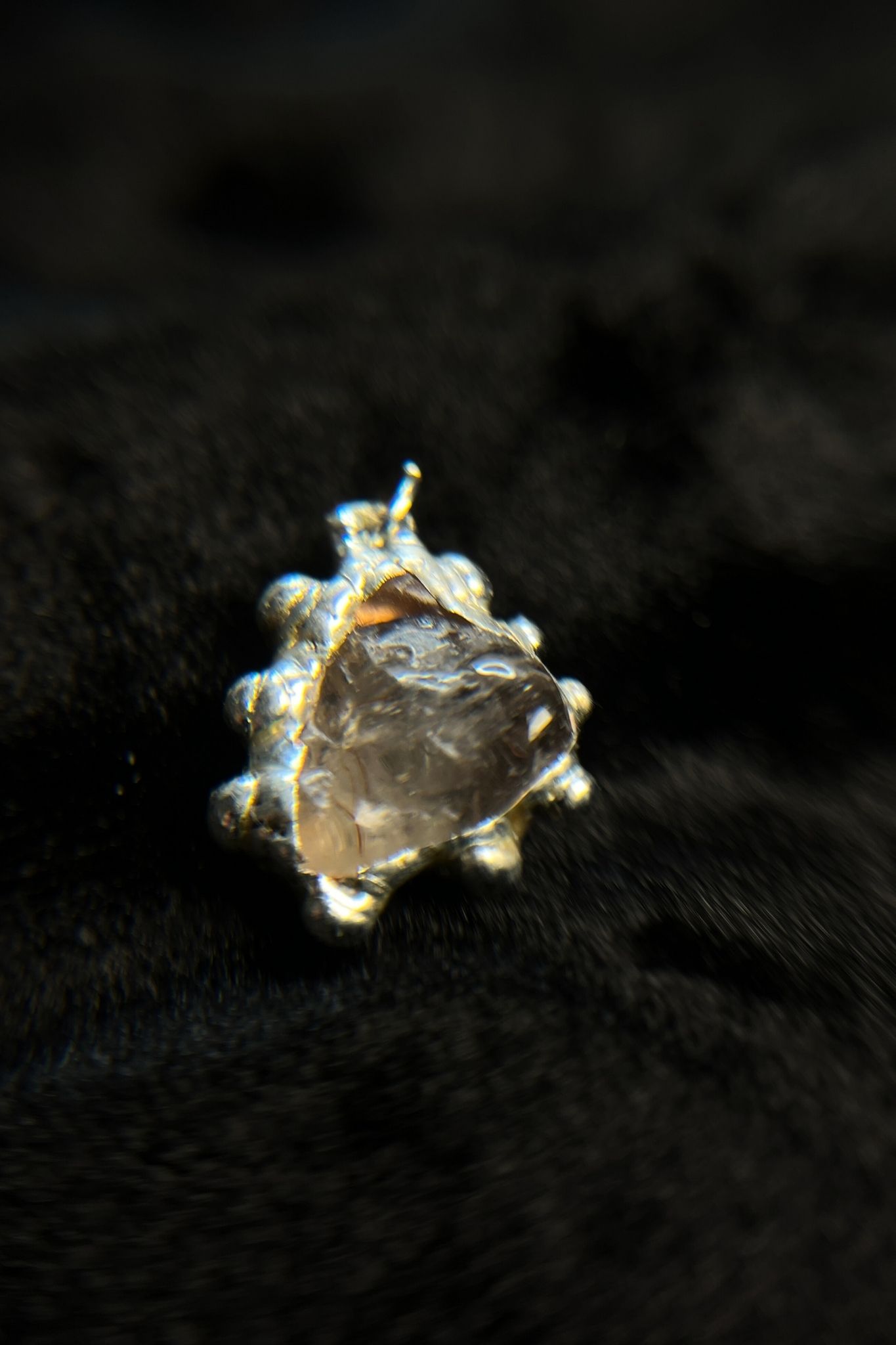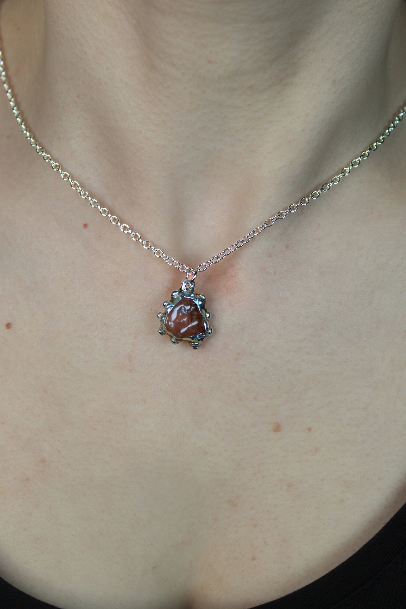 Materials: Metal alloy (soft solder), small brown stone, silver-coated chain